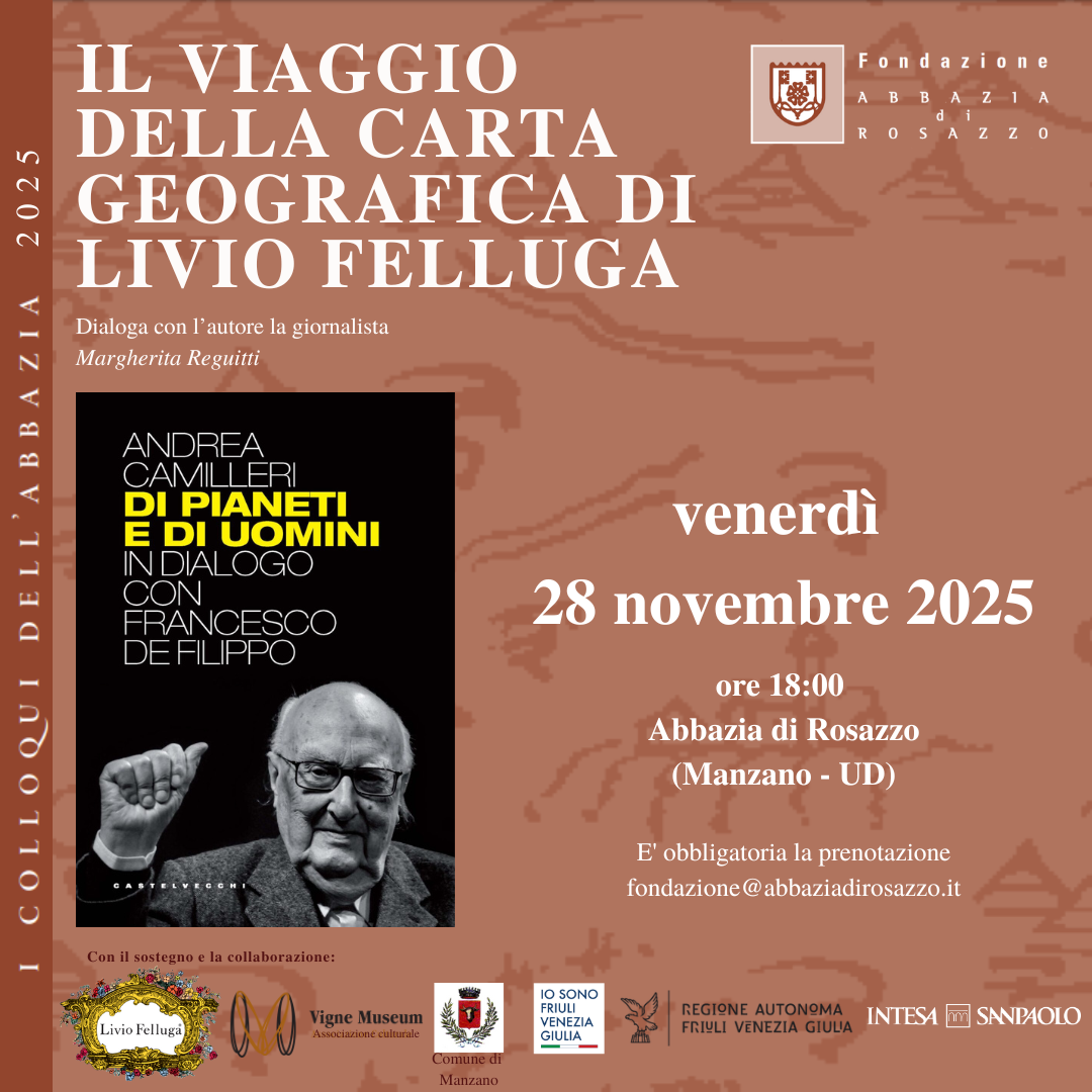 La manifestazione è realizzata dalla Fondazione Abbazia di Rosazzo e dalla Livio Felluga in collaborazione con l’associazione culturale Vigne Museum ed il sostegno del Comune di Manzano, della Regione Autonoma Friuli Venezia Giulia e di Banca Intesa SanPaolo. L’orario di inizio degli incontri è alle 18; è gradita la prenotazione all’indirizzo fondazione@abbaziadirosazzo.it ingresso libero.