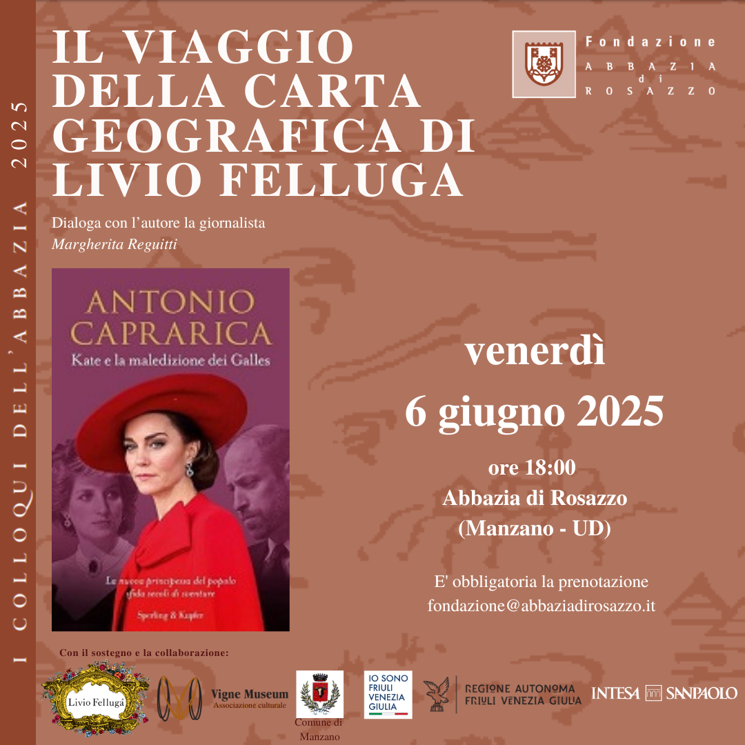 Giugno vedrà il gradito ritorno di un amico della carta geografica di Livio Felluga: in anteprima regionale venerdì 6 Antonio Caprarica con “Kate e la maledizione dei Galles” (Sperling & Kupfer), tutto quello che c’è da sapere sulla futura regina di oltre Manica, ma non solo.