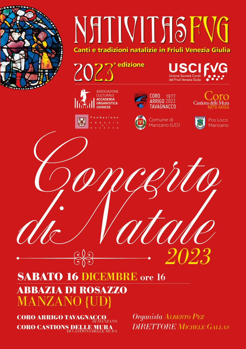 Tradizionale Concerto di Natale del Coro Arrigo Tavagnacco di Manzano, quest'anno dedicato alla figura di Licinio Refice a 140 anni dalla nascita. Verranno eseguite musiche corali e organistiche anche legate al Natale del grande compositore ciociaro.
