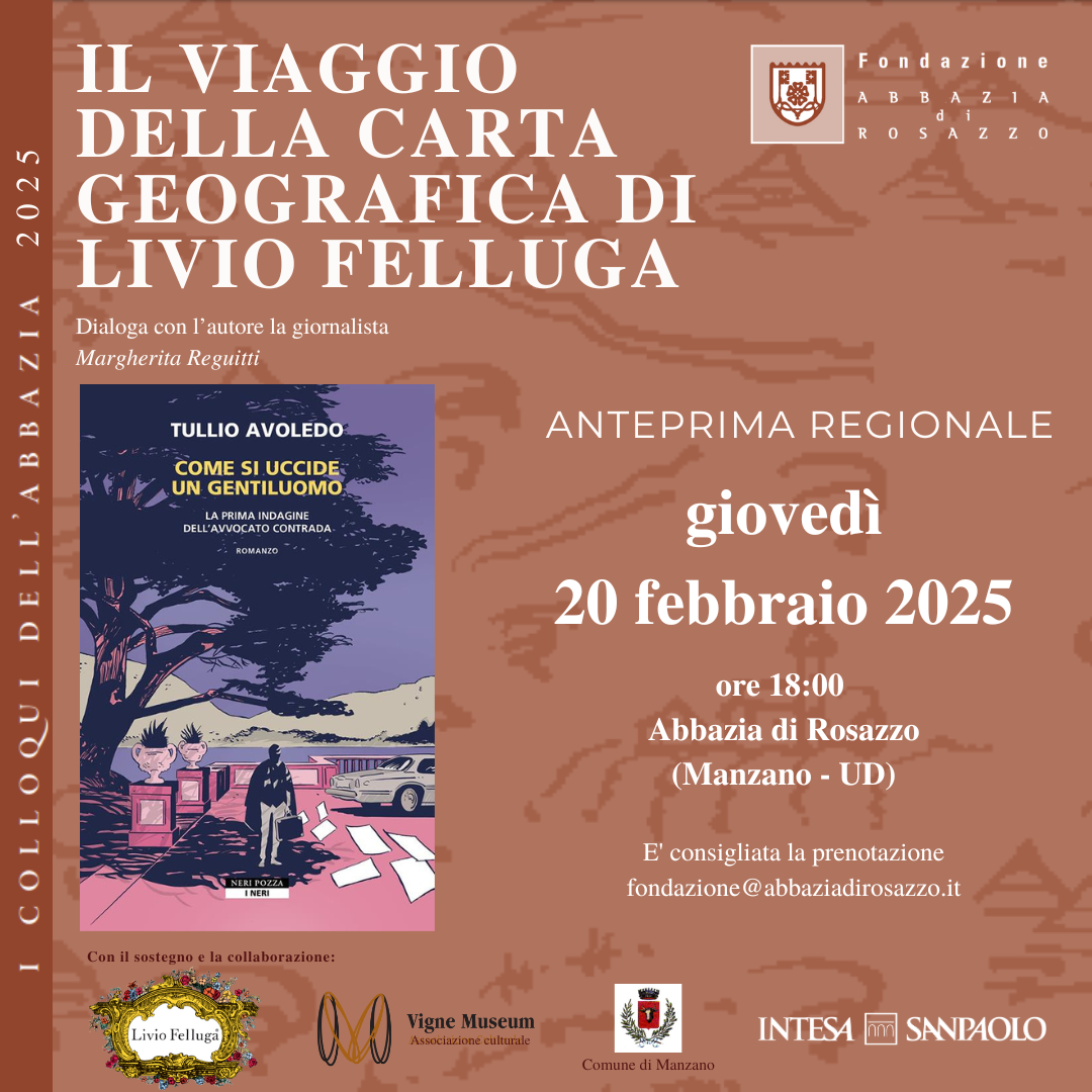 La rassegna è realizzata dalla Fondazione Abbazia di Rosazzo e dalla Livio Felluga, in collaborazione con l’associazione culturale Vigne Museum ed il sostegno del Comune di Manzano e di Banca Intesa SanPaolo. L’orario di inizio dell’incontro è alle 18; è gradita la prenotazione all’indirizzo fondazione@abbaziadirosazzo.it ingresso libero fino al raggiungimento dei posti disponibili. Tutte le informazioni sul sito: www.abbaziadirosazzo.it e sulle pagine social.