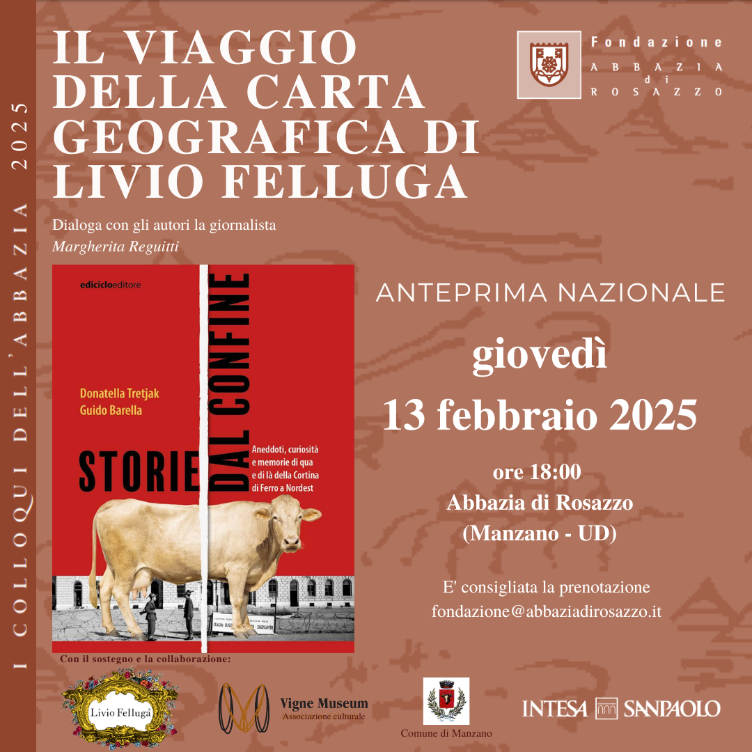 La rassegna è realizzata dalla Fondazione Abbazia di Rosazzo e dalla Livio Felluga, in collaborazione con l’associazione culturale Vigne Museum ed il sostegno del Comune di Manzano e di Banca Intesa SanPaolo. L’orario di inizio dell’incontro è alle 18; è gradita la prenotazione all’indirizzo fondazione@abbaziadirosazzo.it ingresso libero fino al raggiungimento dei posti disponibili. Tutte le informazioni sul sito: www.abbaziadirosazzo.it e sulle pagine social.